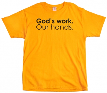 You are here: Home › ‘God’s work. Our hands.’ T-shirts & SOTH Servant Days › GWOH tshirt front GWOH tshirt front Leave a ReplyYou must be logged in to post a comment.